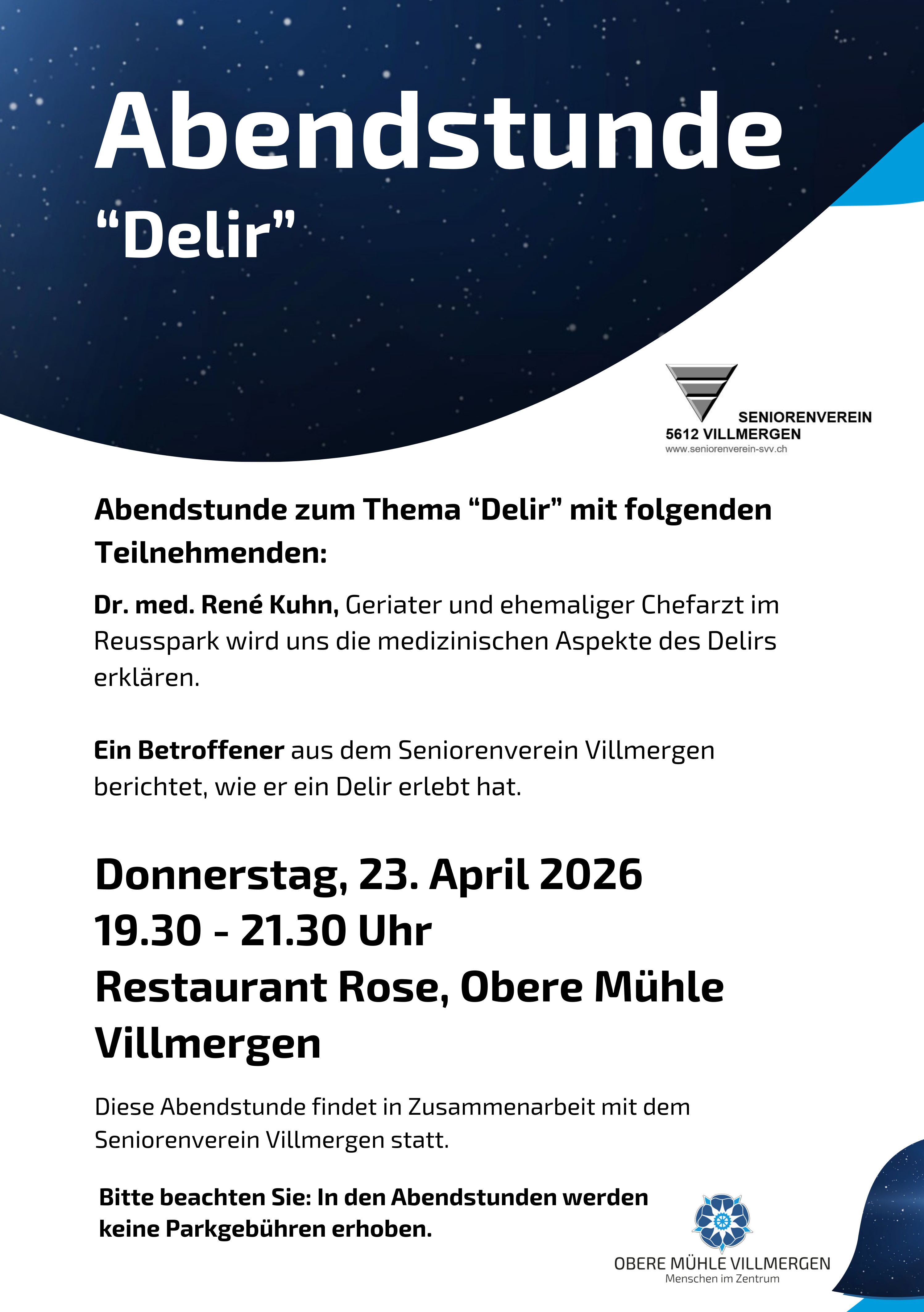 Diese Abendstunde führen wir in Kooperation mit dem Seniorenverein Villmergen durch.